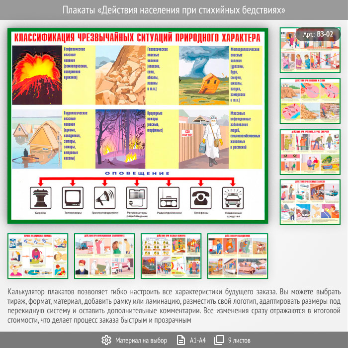 Плакаты «Действия населения при стихийных бедствиях» (ВЗ-02, 9 листов) в Химках купить