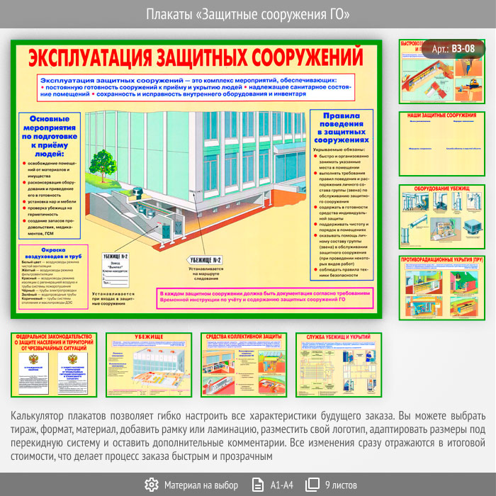 Плакаты «Защитные сооружения ГО» (ВЗ-08, 9 листов) в Химках купить
