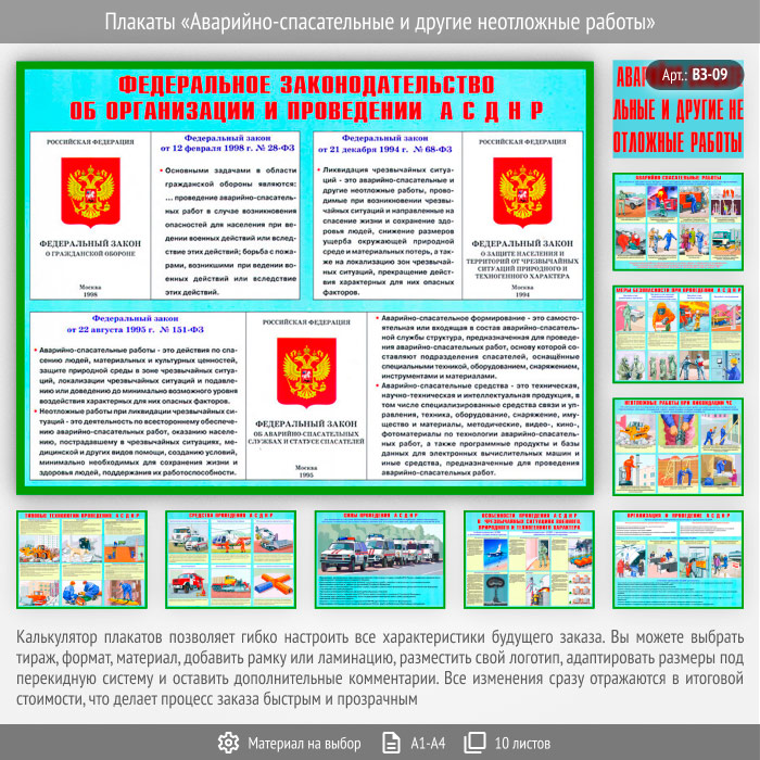 Плакаты «Аварийно-спасательные и другие неотложные работы» (ВЗ-09, 9 листов) в Химках купить