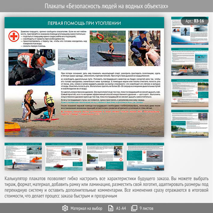 Плакаты «Безопасность людей на водных объектах» (ВЗ-16, 9 листов) в Химках купить