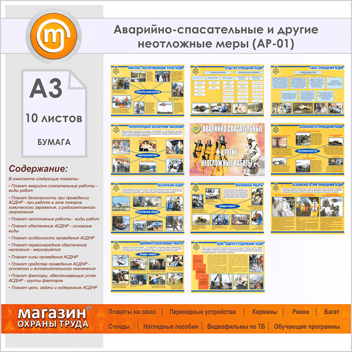 Плакаты «Аварийно-спасательные и другие неотложные меры» (АР-01, бумага, А3, 10 листов) в Химках купить