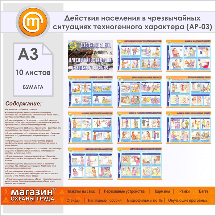 Плакаты «Действия населения в чрезвычайных ситуациях техногенного характера» (АР-03, бумага, А3, 10 листов) в Химках купить