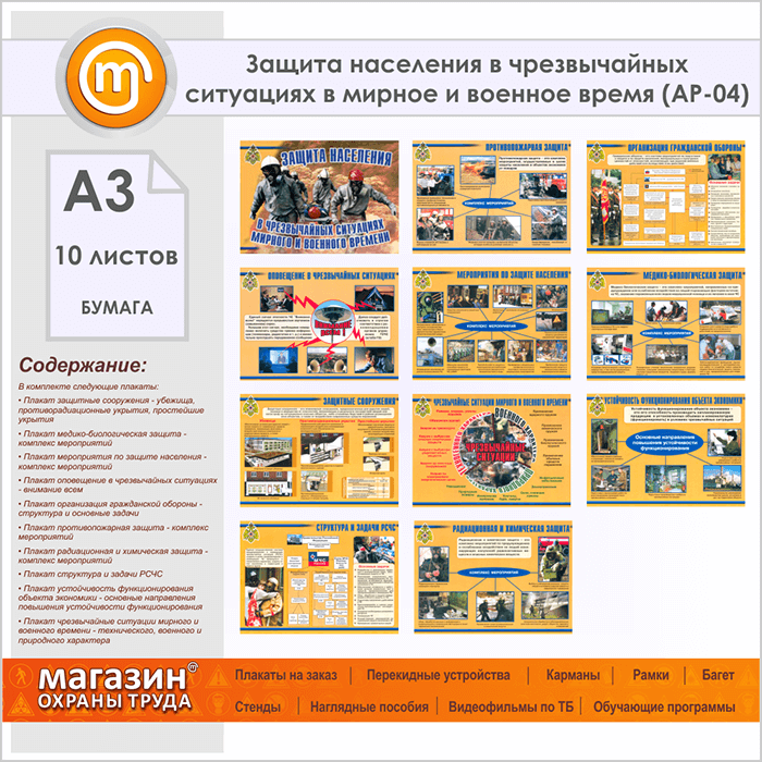 Плакаты «Защита населения в чрезвычайных ситуациях в мирное и военное время» (АР-04, бумага, А3, 10 листов) в Химках купить