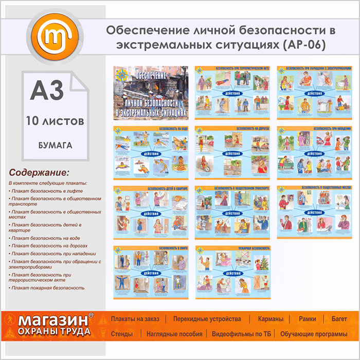 Плакаты «Обеспечение личной безопасности в экстремальных ситуациях» (АР-06, бумага, А3, 10 листов) в Химках купить