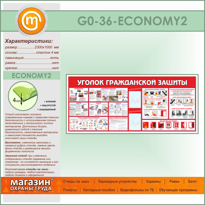 Стенд «Уголок гражданской защиты» c 2 карманами (GO-36-ECONOMY2) в Химках купить