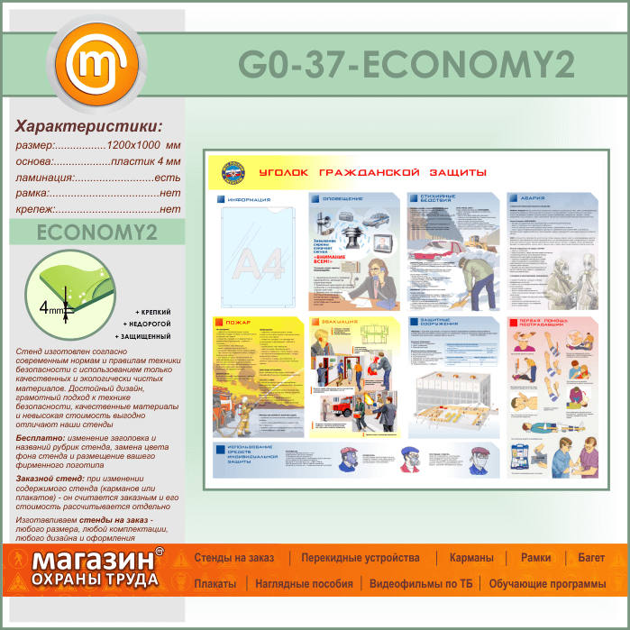 Стенд «Уголок гражданской защиты» с карманом (GO-37-ECONOMY2) в Химках купить