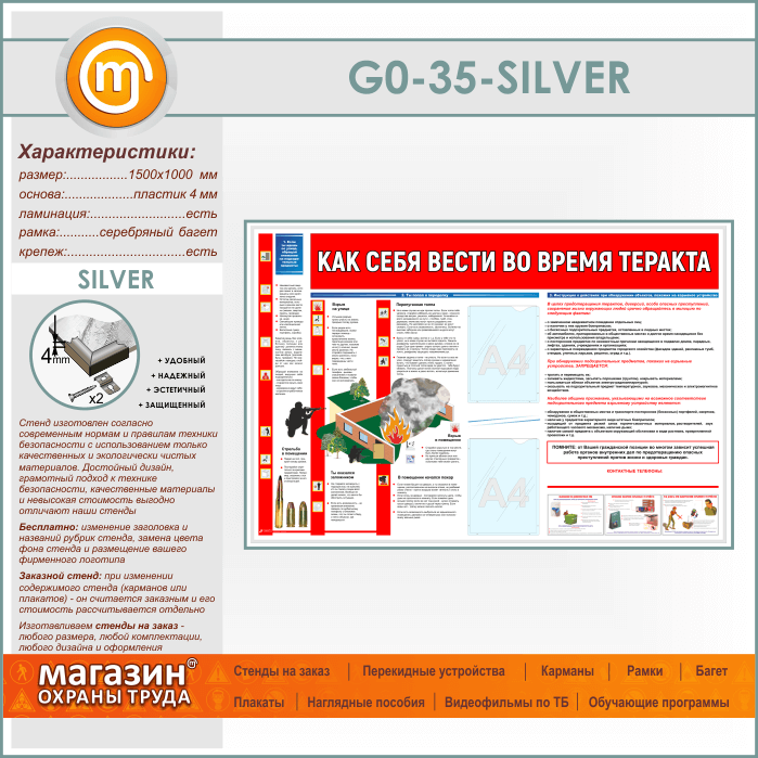 Стенд «Как себя вести во время теракта» c 2 карманами (GO-35-SILVER) в Химках купить
