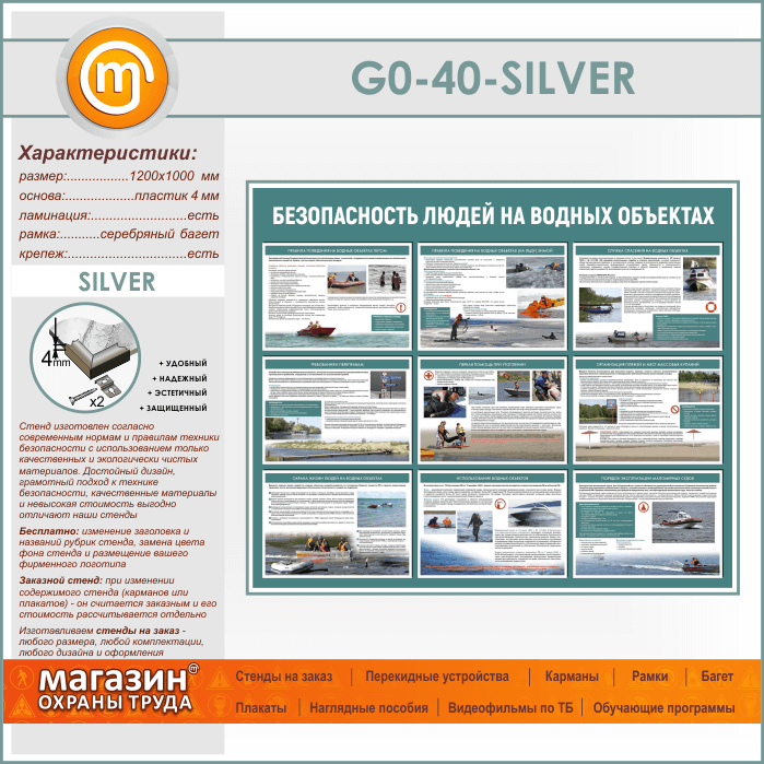 Стенд «Безопасность людей на водных объектах» (GO-40-SILVER) в Химках купить