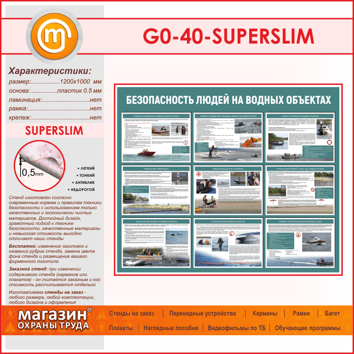 Стенд «Безопасность людей на водных объектах» (GO-40-SUPERSLIM) в Химках купить
