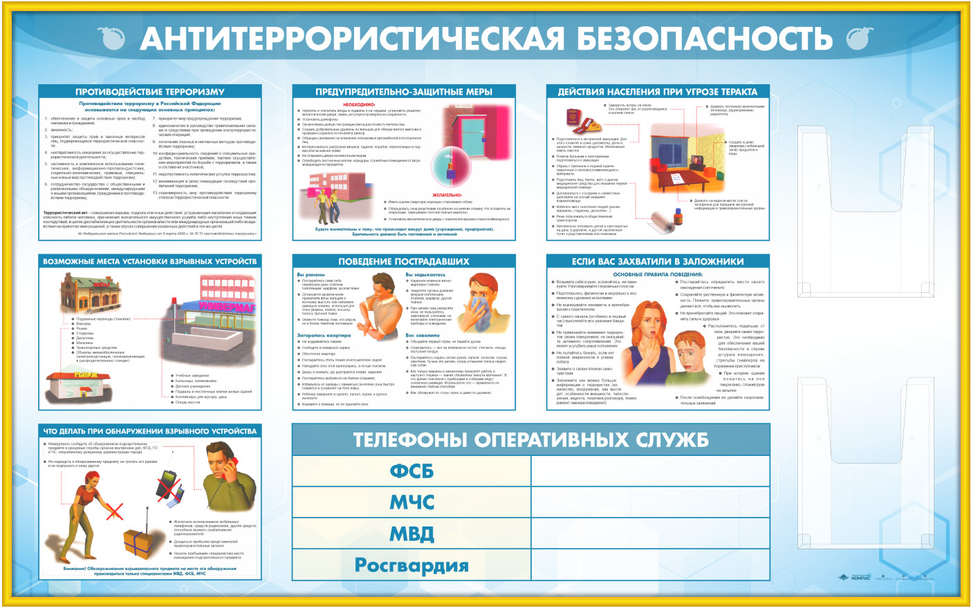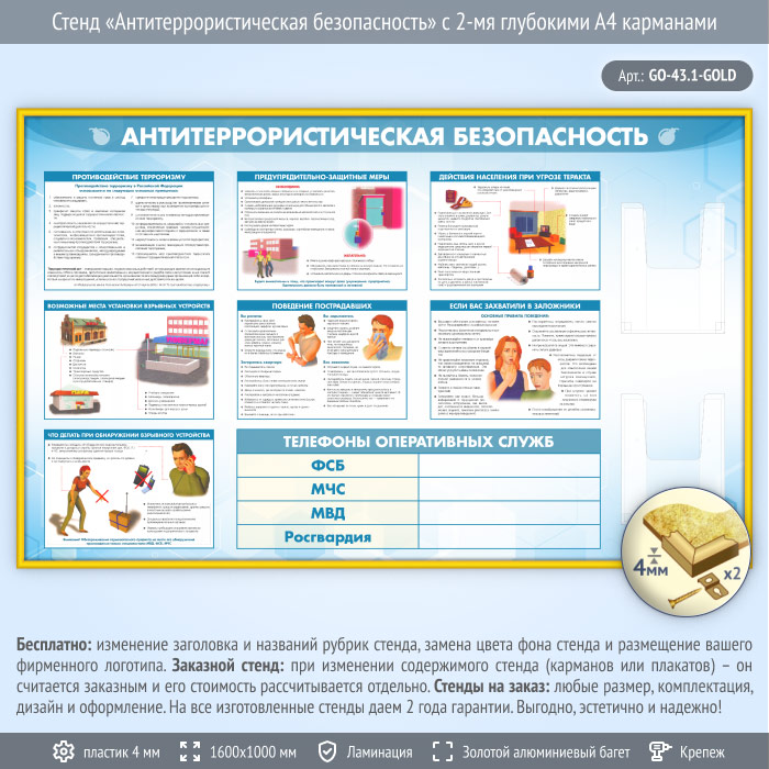 Стенд «Антитеррористическая безопасность» с 2-мя глубокими А4 карманами (GO-43.1-GOLD) в Химках купить