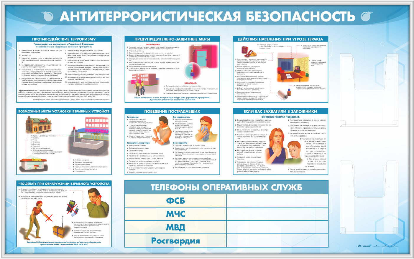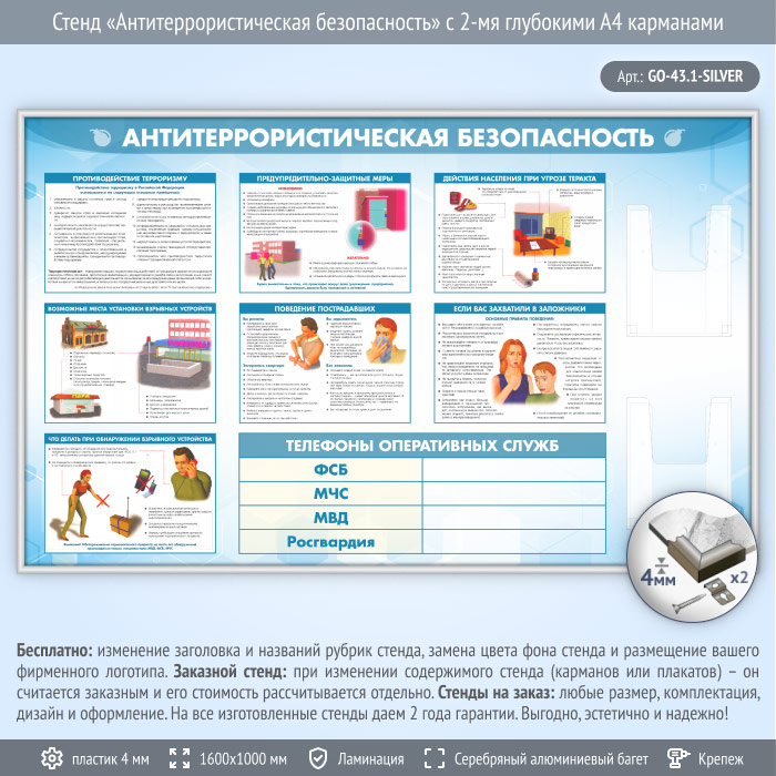 Стенд «Антитеррористическая безопасность» с 2-мя глубокими А4 карманами (GO-43.1-SILVER) в Химках купить