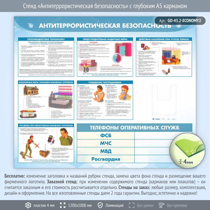 Стенд «Антитеррористическая безопасность» с глубоким А5 карманом (GO-43.2-ECONOMY2) в Химках купить