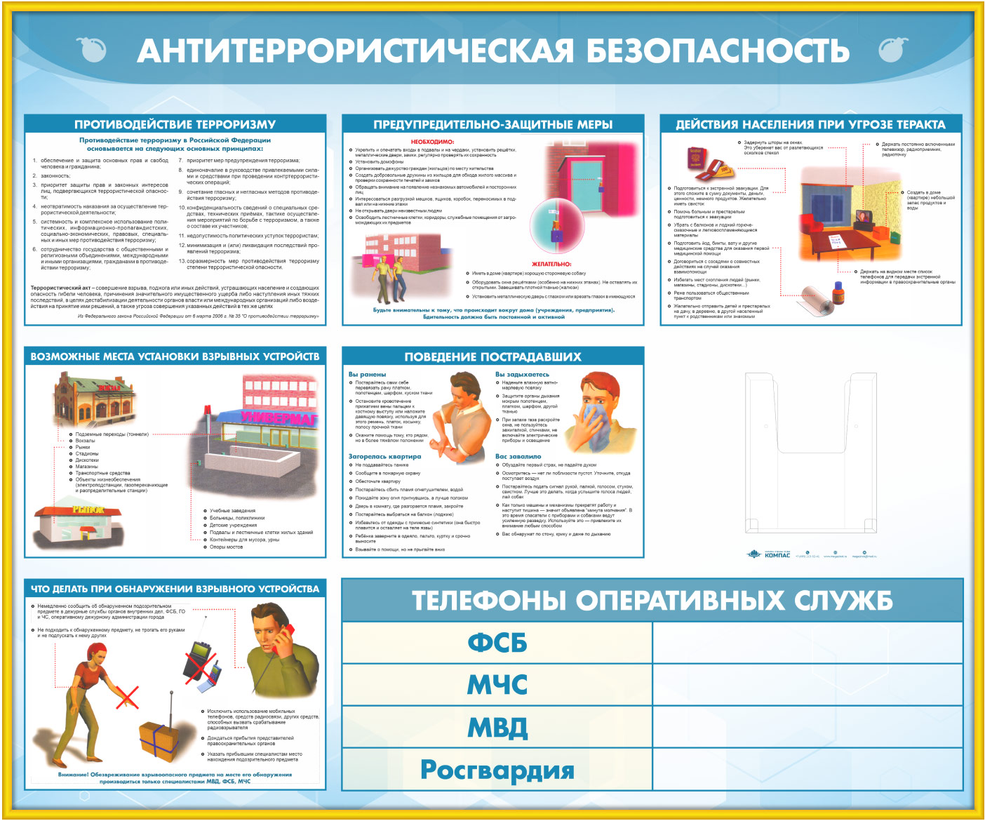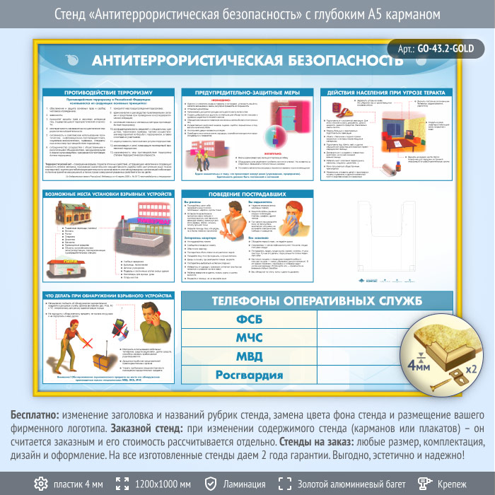 Стенд «Антитеррористическая безопасность» с глубоким А5 карманом (GO-43.2-GOLD) в Химках купить