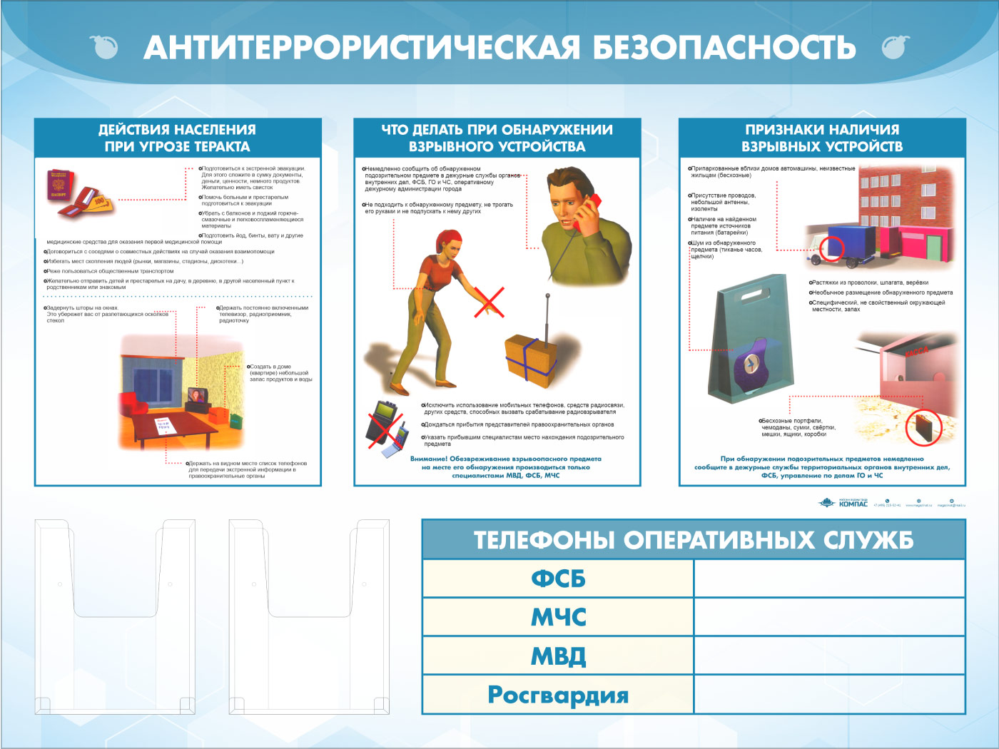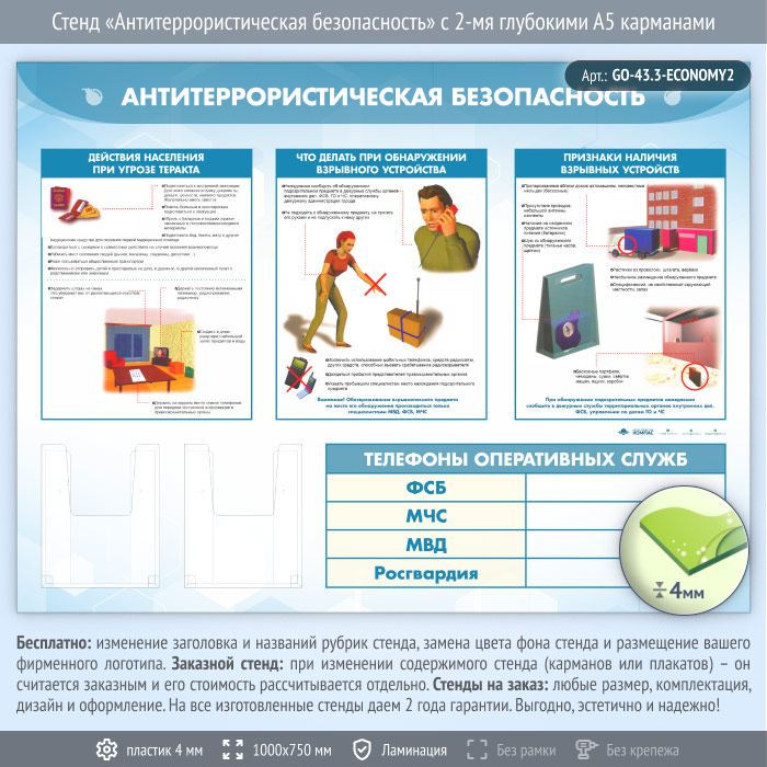 Стенд «Антитеррористическая безопасность» с 2-мя глубокими А5 карманами (GO-43.3-ECONOMY2) в Химках купить