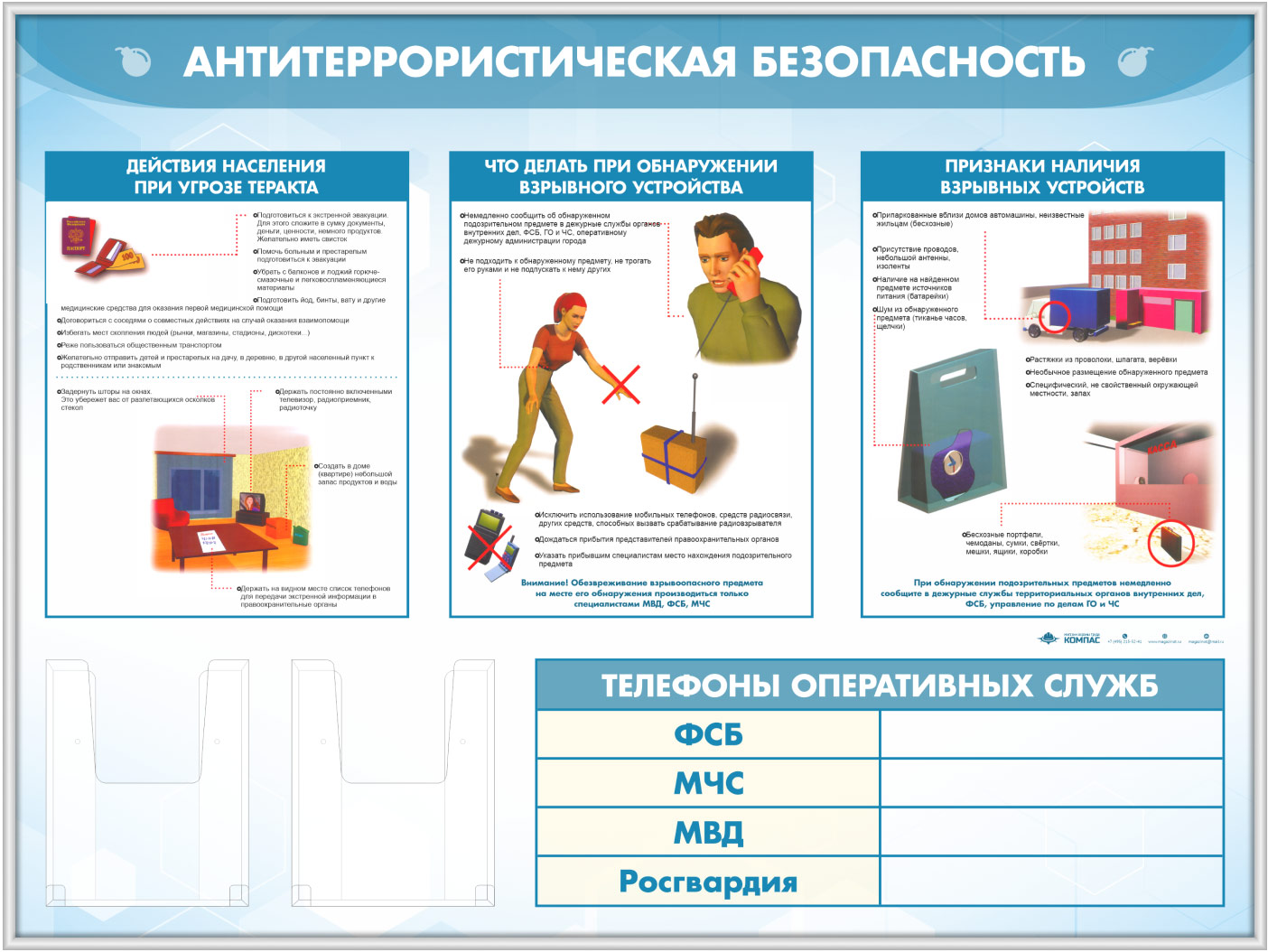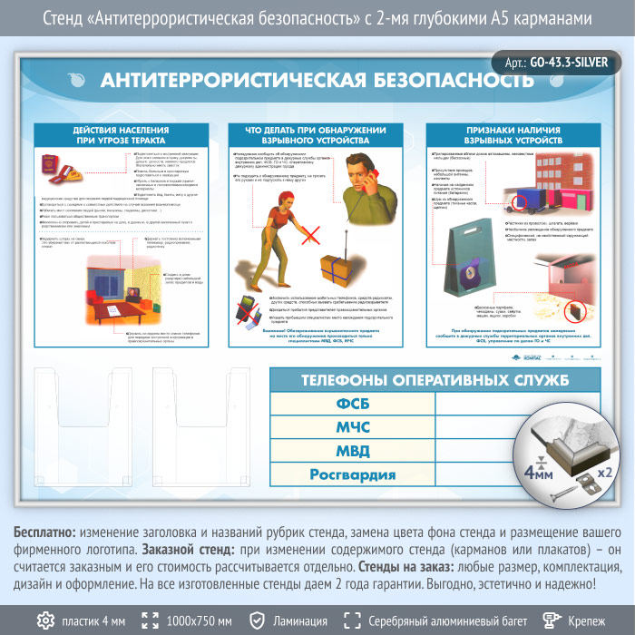 Стенд «Антитеррористическая безопасность» с 2-мя глубокими А5 карманами (GO-43.3-SILVER) в Химках купить
