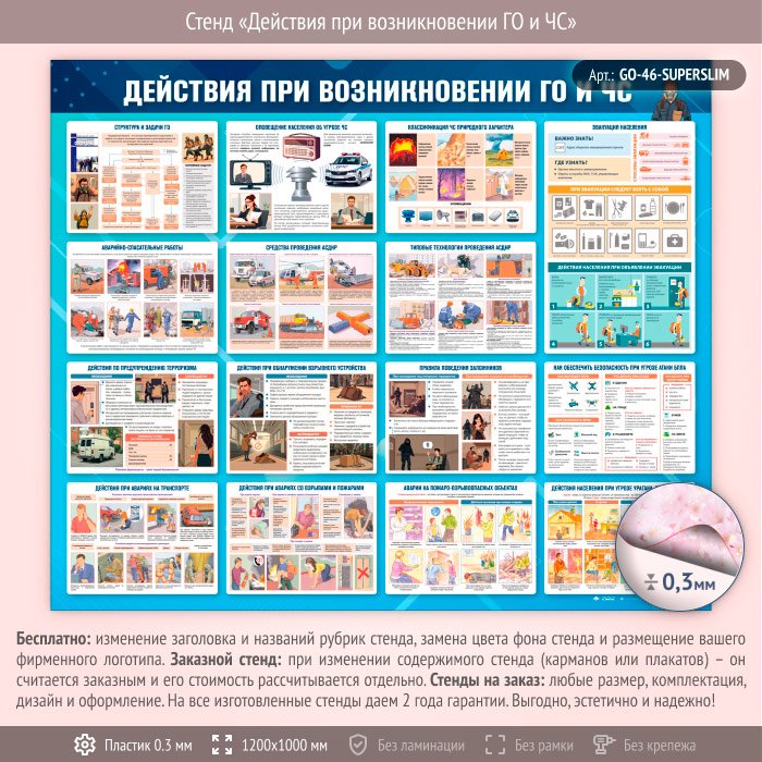 Стенд «Действия при возникновении ГО и ЧС» (GO-46-SUPERSLIM) в Химках купить