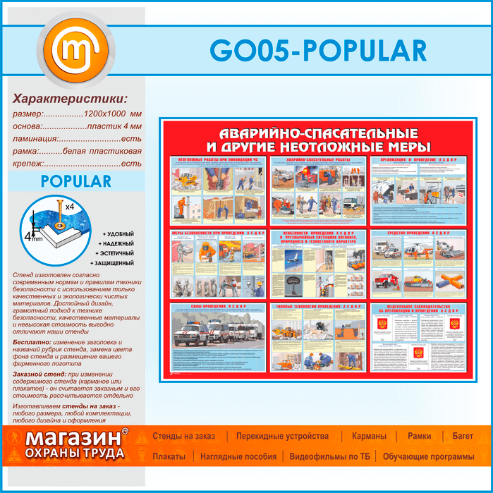 Стенд «Аварийно-спасательные и другие неотложные меры» (GO-05-POPULAR) в Химках купить
