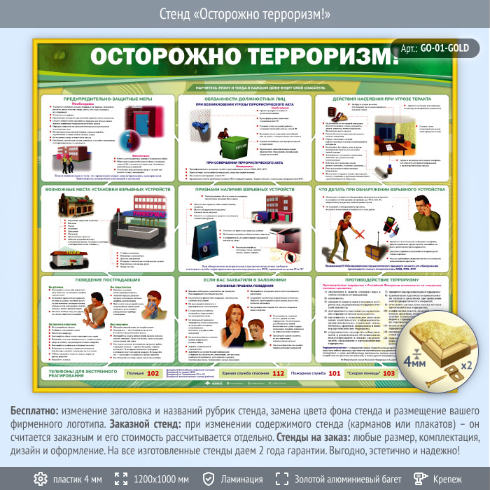 Стенд «Осторожно терроризм!» (GO-01-GOLD) в Химках купить