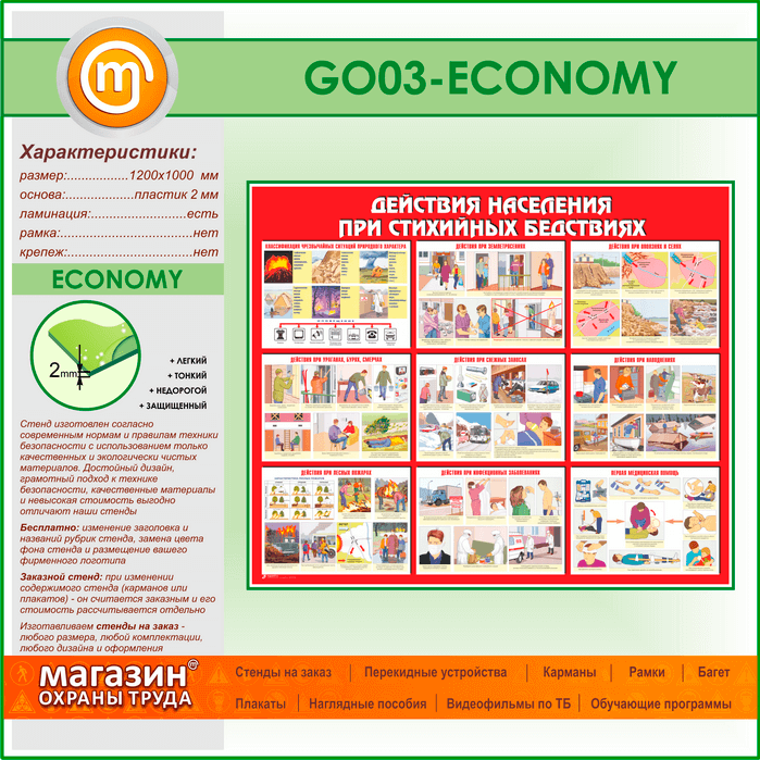 Стенд «Действия населения при стихийных бедствиях» (GO-03-ECONOMY) в Химках купить