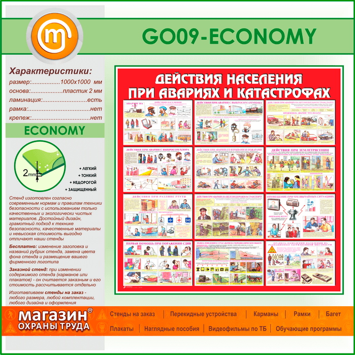 Стенд «Действия населения при авариях и катастрофах» (GO-09-ECONOMY) в Химках купить