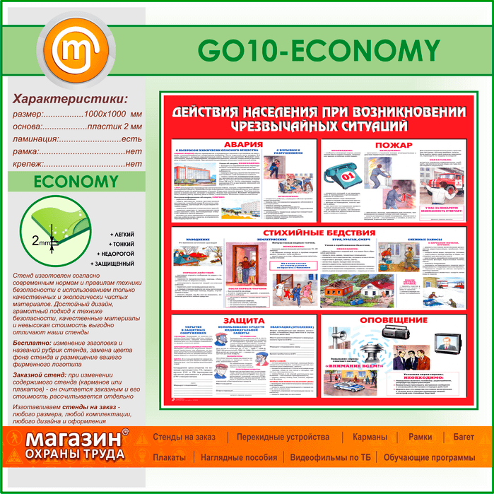 Стенд «Действия населения при возникновении чрезвычайных ситуаций» (GO-10-ECONOMY) в Химках купить