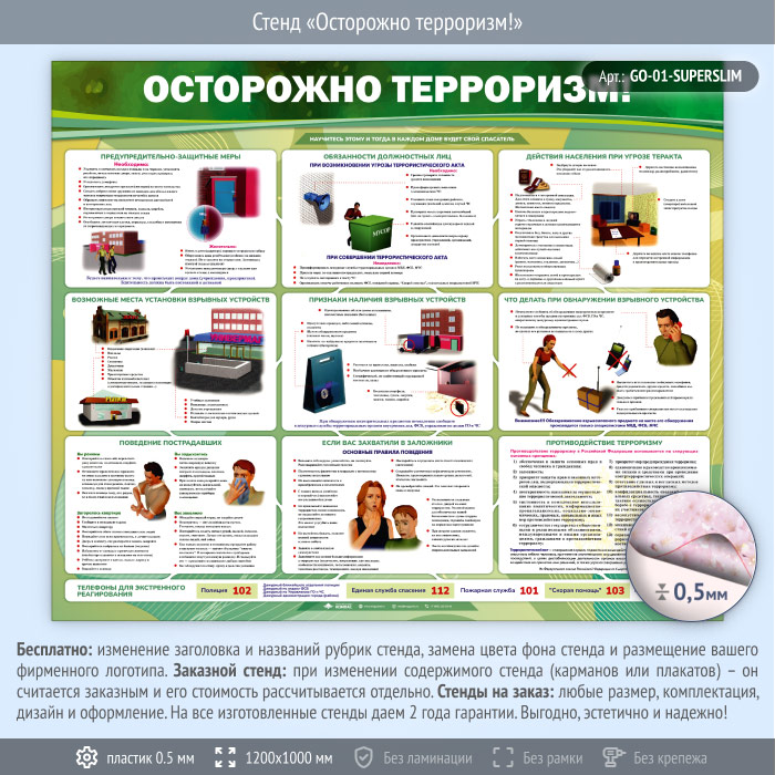 Стенд «Осторожно терроризм!» (GO-01-SUPERSLIM) в Химках купить