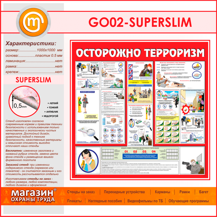 Стенд «Осторожно терроризм!» (GO-02-SUPERSLIM) в Химках купить