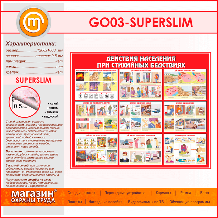 Стенд «Действия населения при стихийных бедствиях» (GO-03-SUPERSLIM) в Химках купить