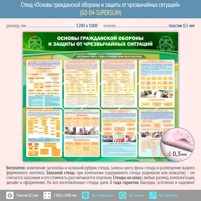 Стенд «Основы гражданской обороны и защиты от чрезвычайных ситуаций» (GO-04-SUPERSLIM) в Химках купить