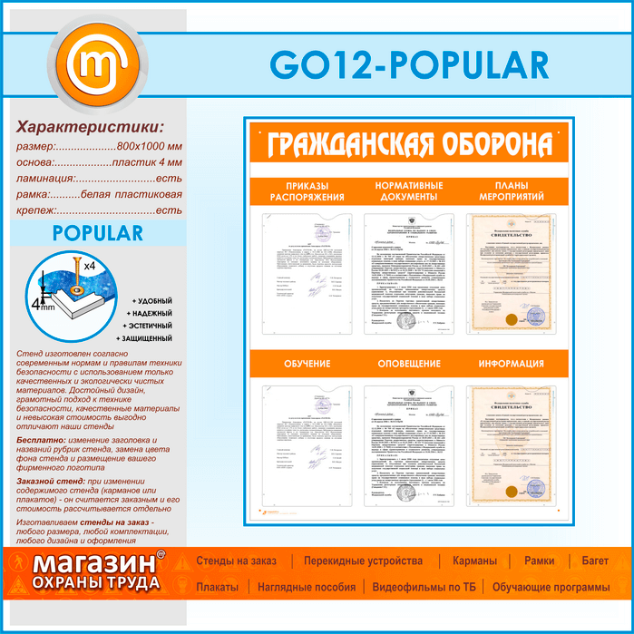 Стенд «Гражданская оборона» с 6 плоскими карманами (GO-12-POPULAR) в Химках купить