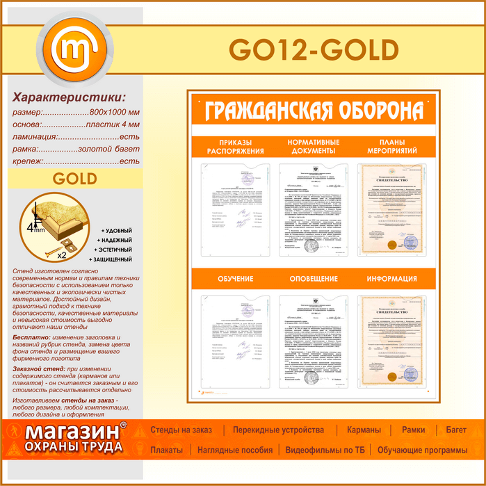Стенд «Гражданская оборона» с 6 плоскими карманами (GO-12-GOLD) в Химках купить