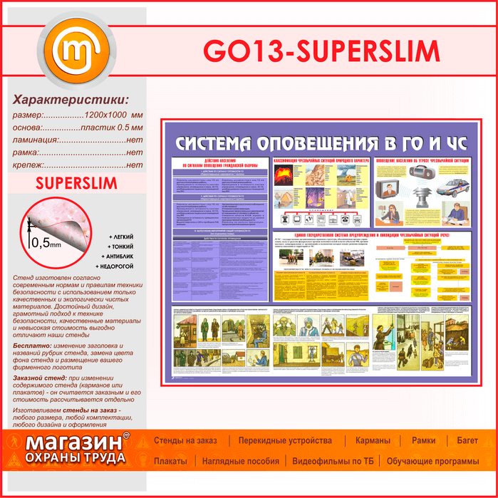 Стенд «Система оповещения в ГО и ЧС» (GO-13-SUPERSLIM) в Химках купить