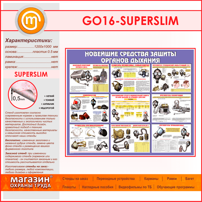Стенд «Новейшие средства защиты органов дыхания» (GO-16-SUPERSLIM) в Химках купить