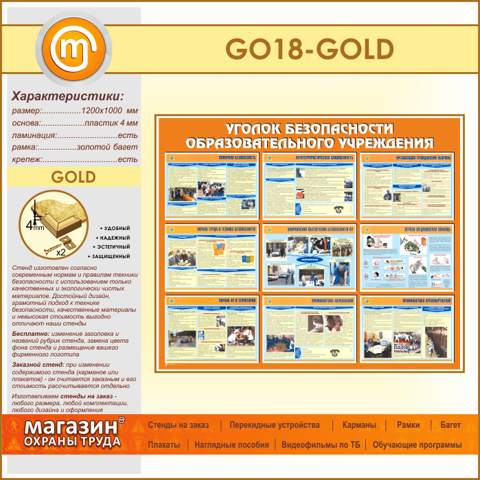 Стенд «Уголок безопасности образовательного учреждения» (GO-18-GOLD) в Химках купить