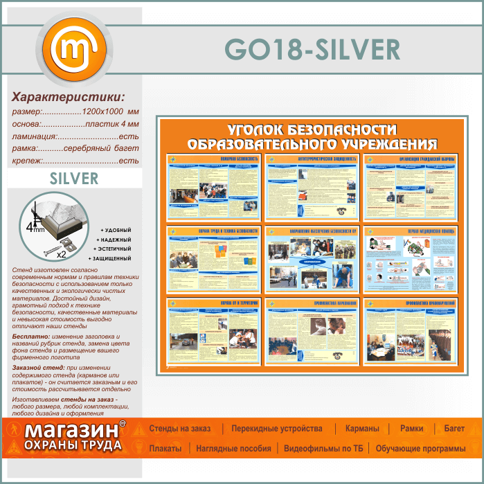 Стенд «Уголок безопасности образовательного учреждения» (GO-18-SILVER) в Химках купить