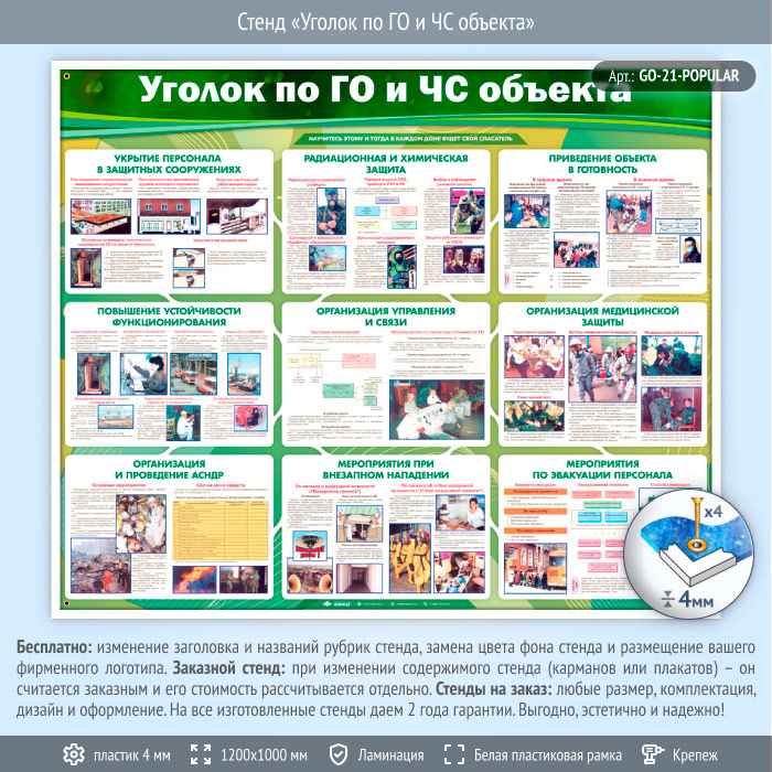 Стенд «Уголок по ГО и ЧС объекта» (GO-21-POPULAR) в Химках купить