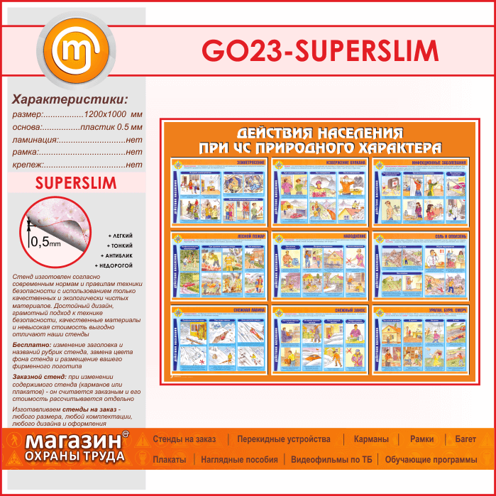 Стенд «Действия населения при ЧС природного характера» (GO-23-SUPERSLIM) в Химках купить