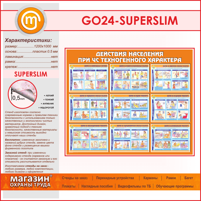 Стенд «Действия населения при ЧС техногенного характера» (GO-24-SUPERSLIM) в Химках купить
