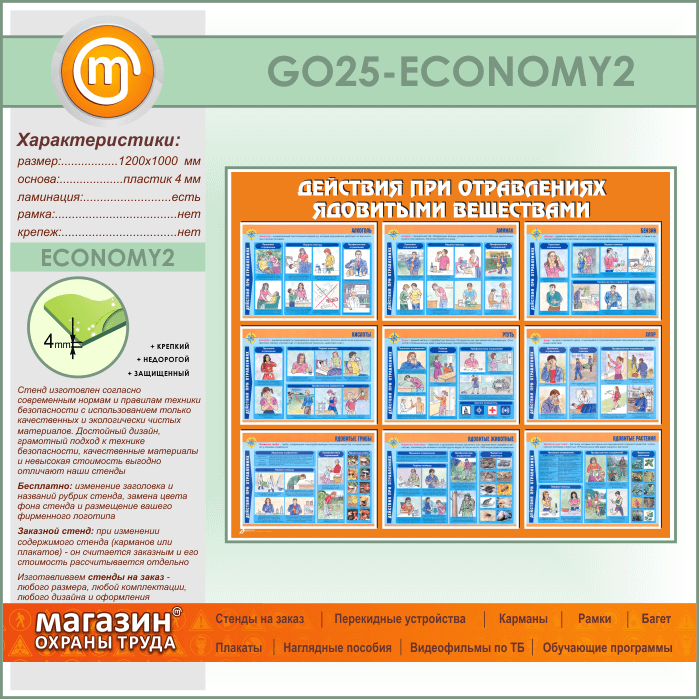 Стенд «Действия при отравлении ядовитыми веществами» (GO-25-ECONOMY2) в Химках купить