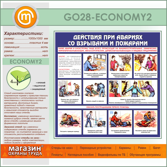 Стенд «Действия при авариях со взрывами и пожарами» (GO-28-ECONOMY2) в Химках купить