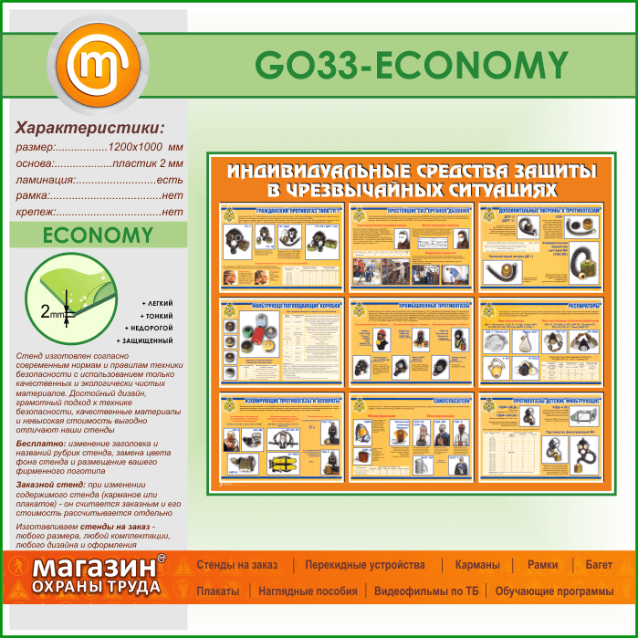 Стенд «Индивидуальные средства защиты в чрезвычайных ситуациях» (GO-33-ECONOMY) в Химках купить