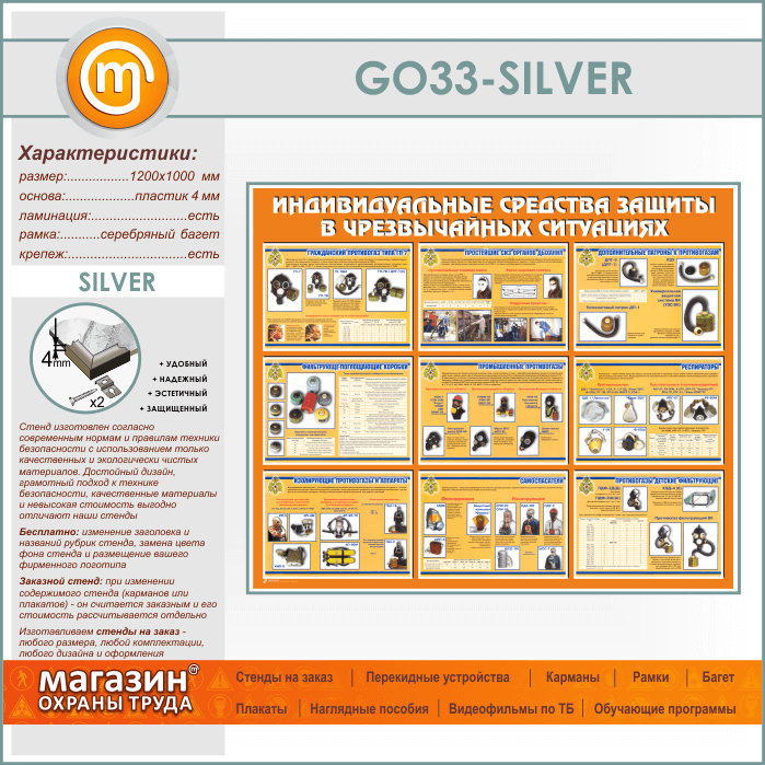 Стенд «Индивидуальные средства защиты в чрезвычайных ситуациях» (GO-33-SILVER) в Химках купить