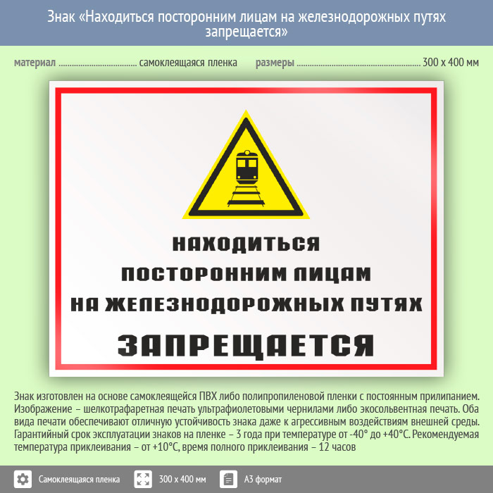 Знак «Находиться посторонним лицам на железнодорожных путях запрещается», КЗ-24 (пленка, 400х300 мм) в Химках купить
