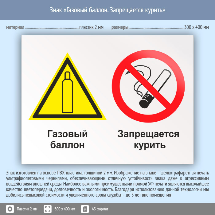 Знак «Газовый баллон. Запрещается курить», КЗ-18 (пластик, 400х300 мм) в Химках купить