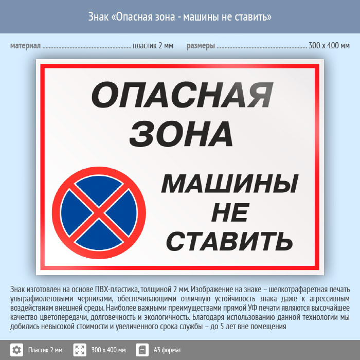 Знак «Опасная зона - машины не ставить», КЗ-32 (пластик, 400х300 мм) в Химках купить