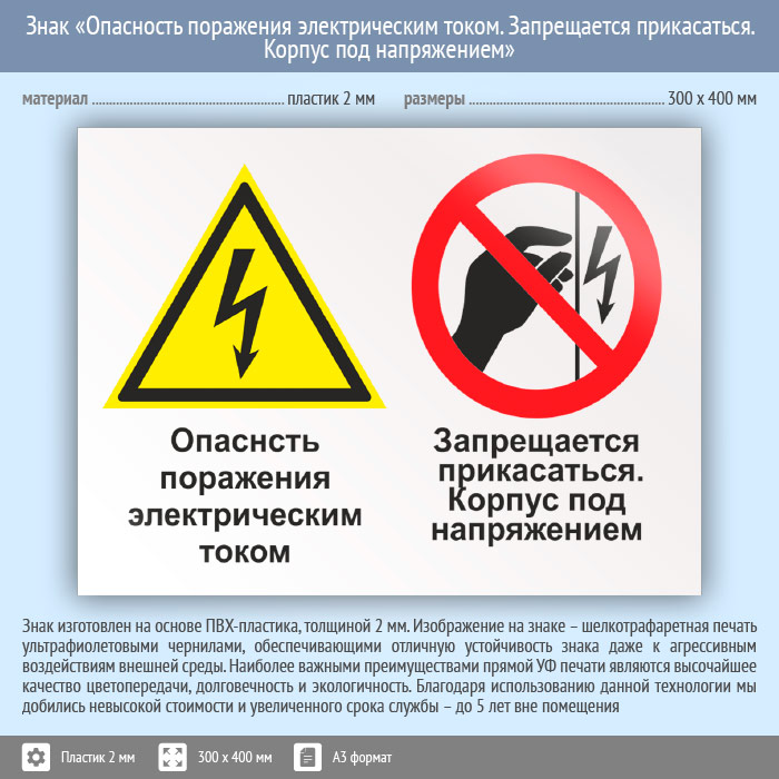 Знак «Опасность поражения электрическим током. Запрещается прикасаться. Корпус под напряжением», КЗ-47 (пластик, 400х300 мм) в Химках купить