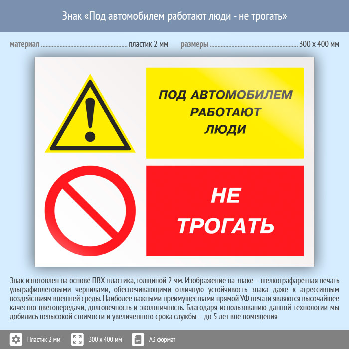 Знак «Под автомобилем работают люди - не трогать», КЗ-66 (пластик, 400х300 мм) в Химках купить