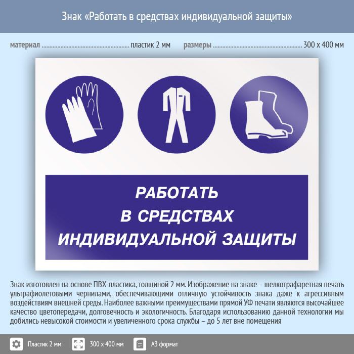 Знак «Работать в средствах индивидуальной защиты», КЗ-81 (пластик, 400х300 мм) в Химках купить