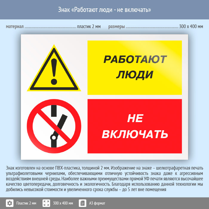 Знак «Работают люди - не включать», КЗ-83 (пластик, 400х300 мм) в Химках купить