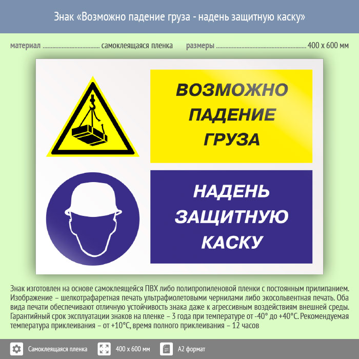 Знак «Возможно падение груза - надень защитную каску», КЗ-17 (пленка, 600х400 мм) в Химках купить